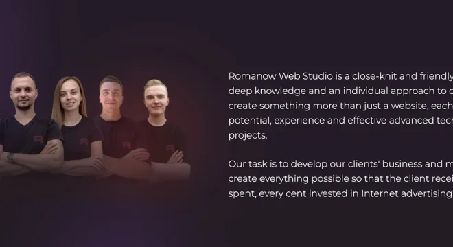 Romanow Web Studio – Digital Web Design Agency focused on building modern, clean-coded websites. We create landing pages, online stores, and complex web solutions, while also offering professional services in design, marketing, and technical support. Our friendly team of experts approaches each project individually, combining creativity, experience, and advanced technology to deliver unique results. Our goal is to help clients grow their business and achieve long-term success.