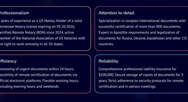 More than 4 years of experience in the field of US notary services are now available to you. As a certified Tennessee Notary Public and holder of a Remote Online Notary (RON) license.